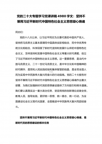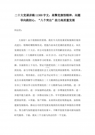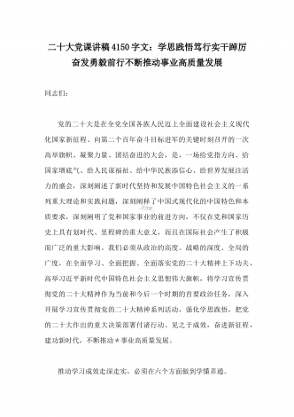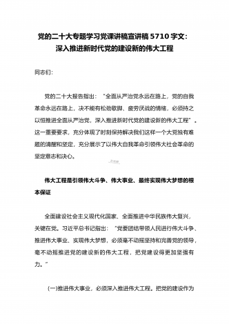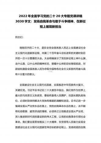 2022年全面学习党的二十20大专题党课讲稿3030字文:发扬自我革命与敢于斗争精神,在新征程上展现新担当