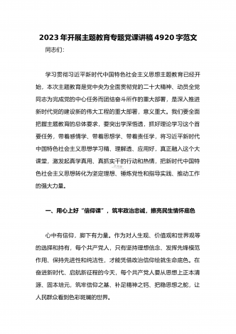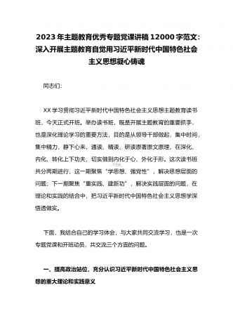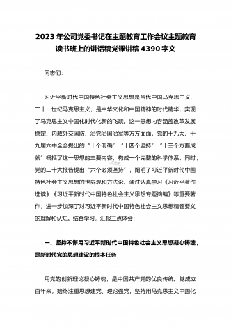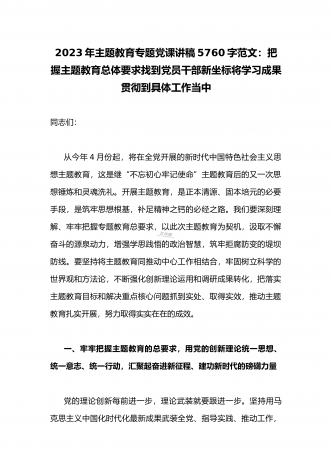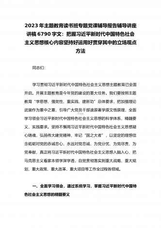2023年主题教育读书班专题党课辅导报告辅导讲座讲稿6790字文:把握习近平新时代中国特色社会主义思想核心内容坚持好运用好贯穿其中的立场观点方法