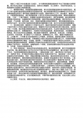审计局长在市管干部学习贯彻党的二十届三中全会精神研讨班发言材料