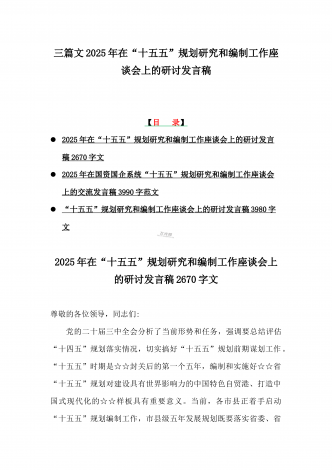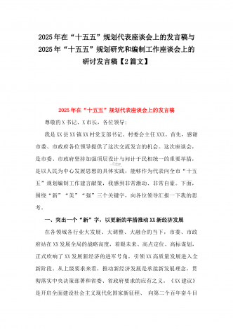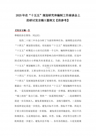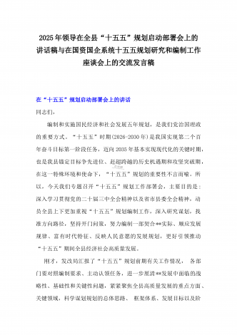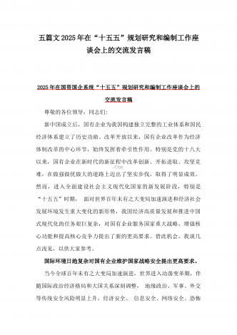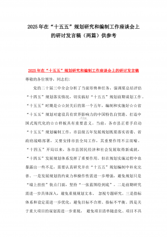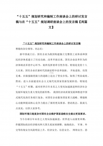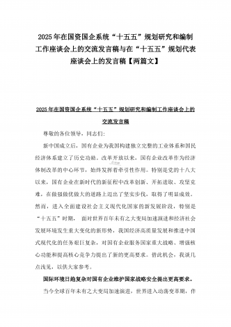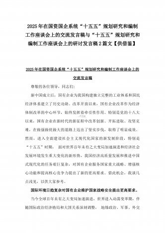 2025年在国资国企系统“十五五”规划研究和编制工作座谈会上的交流发言稿与“十五五”规划研究和编制工作座谈会上的研讨发言稿2篇文【供借鉴】