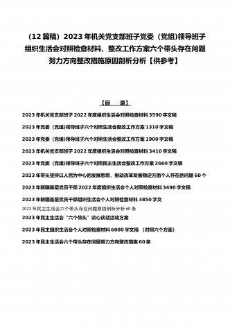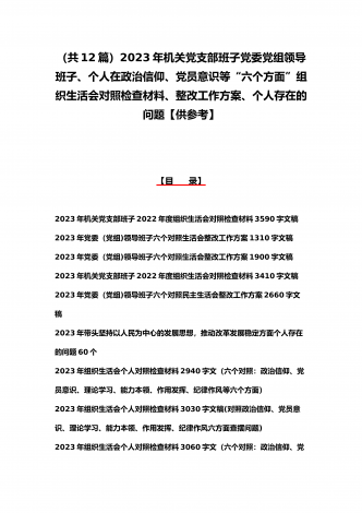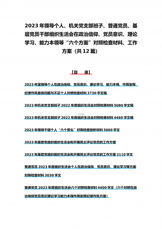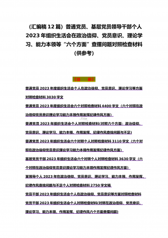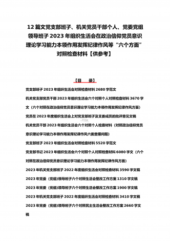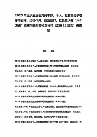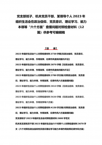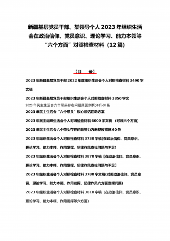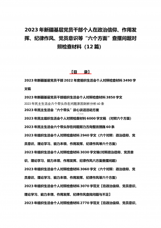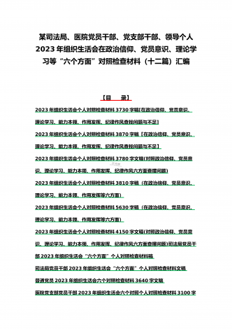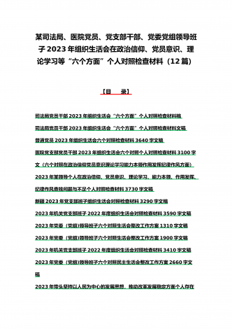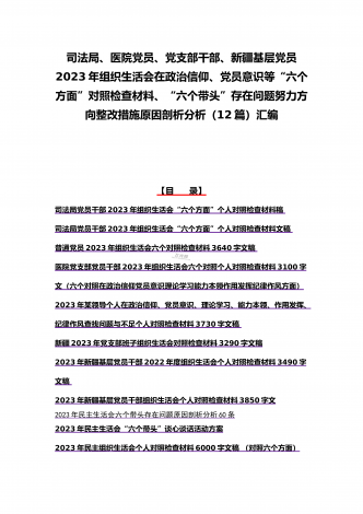 司法局、医院党员、党支部干部、新疆基层党员2023年组织生活会在政治信仰、党员意识等“六个方面”对照检查材料、“六个带头”存在问题努力方向整改措施原因剖析分析(12篇)汇编