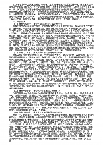 2024年是中华人民共和国成立75“”周年,是实施十四五规划的关键一年。市直系统坚持以习近平新时代中国特色社会主义思想为指导,全面贯彻落实党的二十大和二十届三中全会精神,深入学习贯彻习近平总书记关于党的建设的重要思想和对机关党建工作的重要讲话精神,“”塑造全景式机关党建新形象,持续创建信仰信念坚定的政治机关、能力本领过硬的专业机关、执行落实有力的品牌机关、勇于开拓创新的形象机关、纪律规纪严明的放心机关、办事便“”捷高效的满意机关六型机关,以机关党建引领机关建设质量全面提高,以模范机关建设激发...