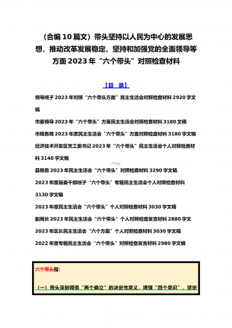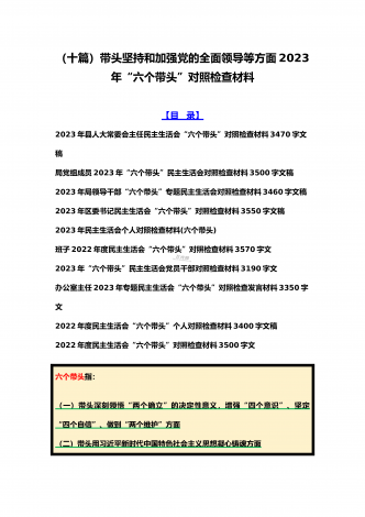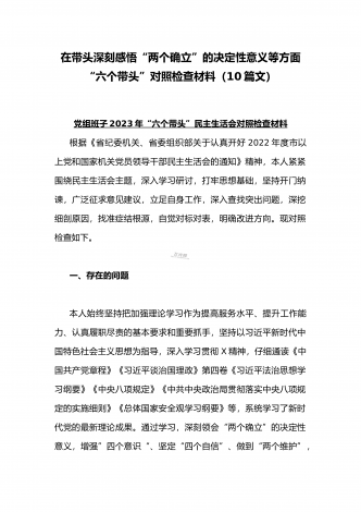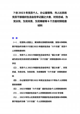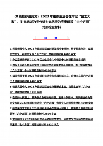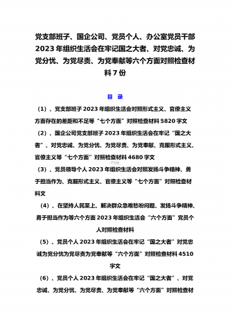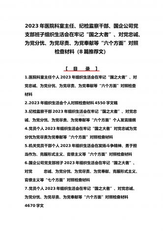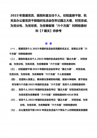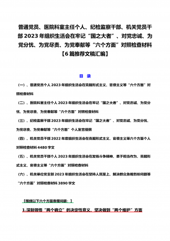 普通党员、医院科室主任个人、纪检监察干部、机关党员干部2023年组织生活会在牢记“国之大者”、对党忠诚、为党分忧、为党尽责、为党奉献等“六个方面”对照检查材料【6篇推荐文稿汇编】