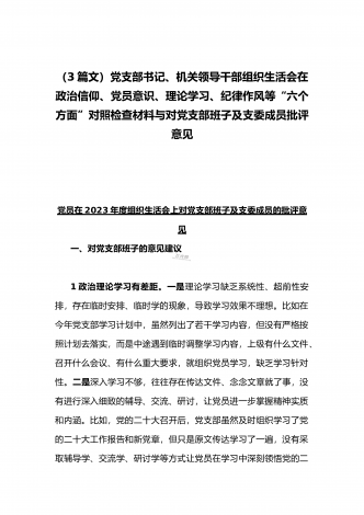 2023年党委党组领导班子“六个对照”整改方案与新疆关支部书记对照新时代党的治疆方略等“五个对照”检查材料、普通党员组织生活会在作用发挥、政治信仰等“六个方面”对照检查材料(4篇)2023年党委(党组)领导班子六个对照生活会整改工作方案区委宣传部高度重视区委区政府班子2022年度民主生活会征求意见有关理论学习方面的整改落实,把理论学习作为落实意识形态主体责任的一项重要内容来抓,紧紧抓住党组织领导班子和主要负责人这一关键,以学习宣传贯彻习近平新时代中国特色社会主义思想和党的XX大精神为核心,加强对...