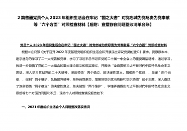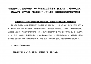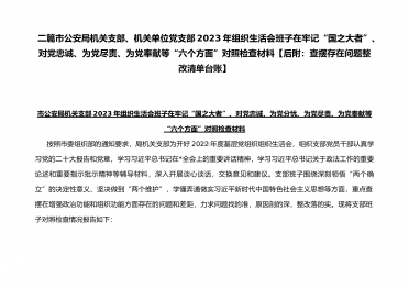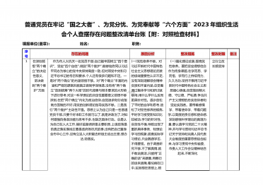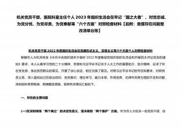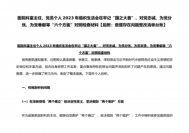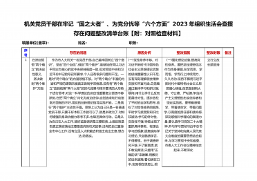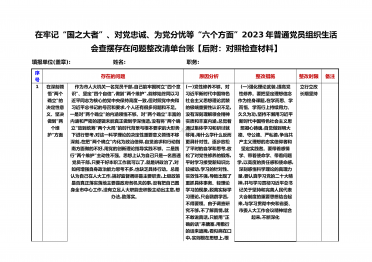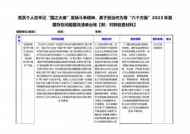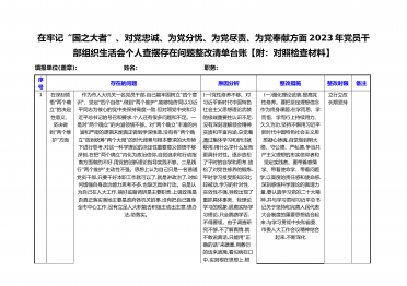 在牢记“国之大者”、对党忠诚、为党分忧、为党尽责、为党奉献方面2023年党员干部组织生活会个人查摆存在问题整改清单台账【附:对照检查材料】