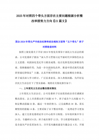 2025年带头严守政治纪律和政治规矩,维护党的结统一等“四个带头”存在问题、原因剖析及整改措施、下步努力方向(多篇文)汇编供参考