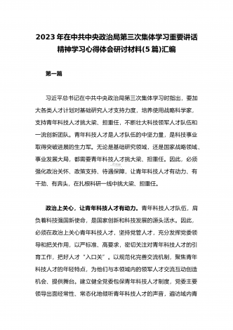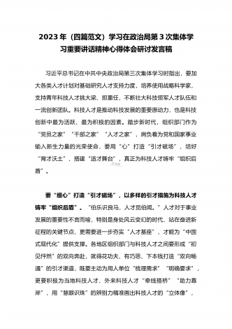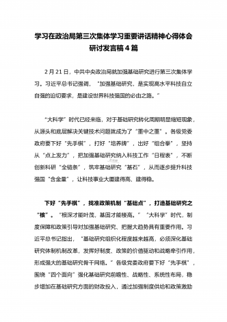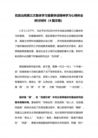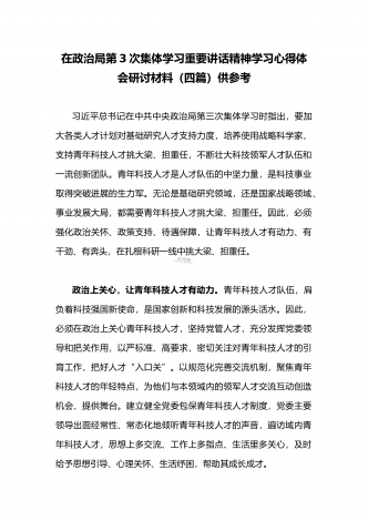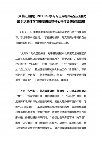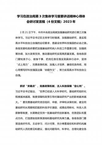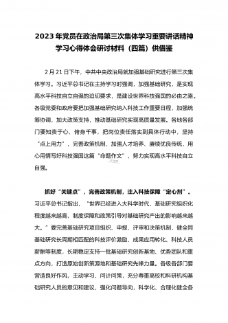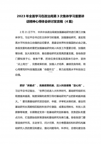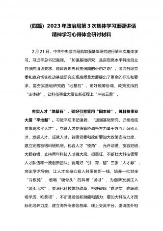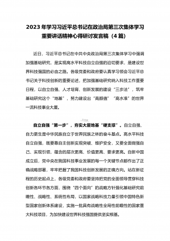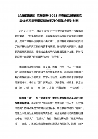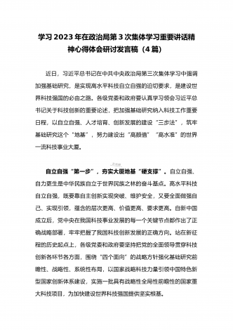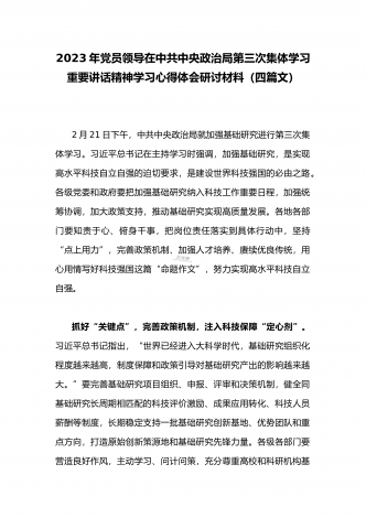 2023年党员领导在中共中央政治局第三次集体学习重要讲话精神学习心得体会研讨材料(四篇文)