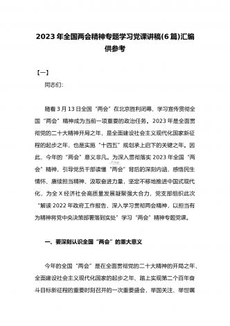 【汇编11篇文】2023年全国两会会议精神学习讲话稿、传达提纲、心得体会、发言材料(供借鉴)