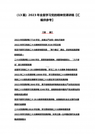 【汇编11篇文】2023年全国两会会议精神学习讲话稿、传达提纲、心得体会、发言材料(供借鉴)【目录】2023年全国“两会”集中学习研讨交流发言稿2390字文2023年在全市传达学习全国“两会”精神领导干部大会上的总结讲话稿在学习传达2023年全国两会精神会议上的主持讲话及发言提纲1970字范文稿在学习传达2023年全国两会精神会议上的主持讲话及发言提纲2030字范文稿2023年专题学习贯彻全国“两会”精神交流会上的发言稿1790字文2023年全国两会精神传达提纲1750字文稿深入学习领会2023...