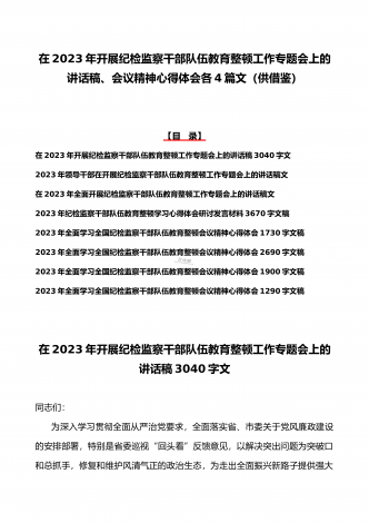 2023年学习全国纪检监察干部队伍教育整顿会议精神心得体会4篇文与学习心得体会研讨发言材料(5份)合集供参考