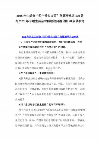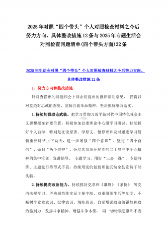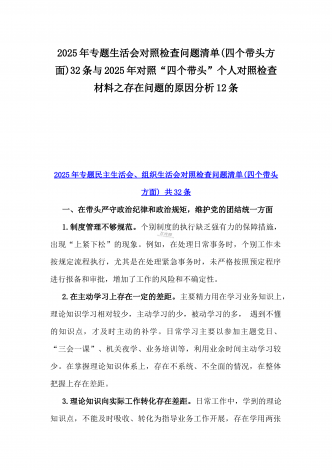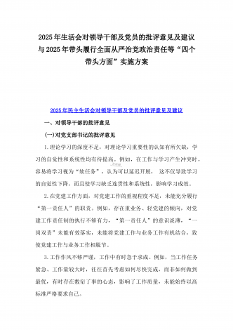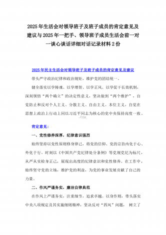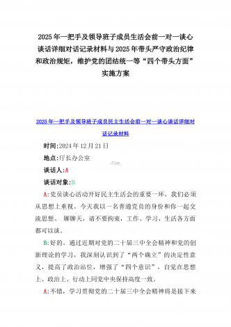 2025年一把手及领导班子成员生活会前一对一谈心谈话详细对话记录材料与2025年带头严守政治纪律和政治规矩,维护党的团结统一等“四个带头方面”实施方案