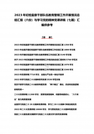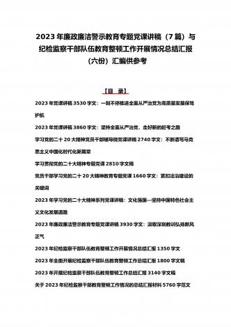2023年纪检监察干部队伍教育整顿学习心得体会研讨发言材料(5份)与廉政廉洁警示教育专题党课讲稿七篇汇编(供参考)