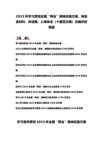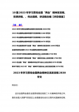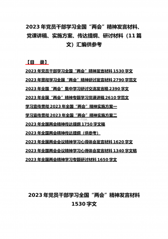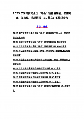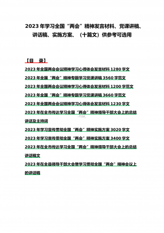 2023年党员干部学习全国“两会”精神发言材料、党课讲稿、实施方案、传达提纲、研讨材料(11篇文)汇编供参考
