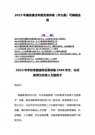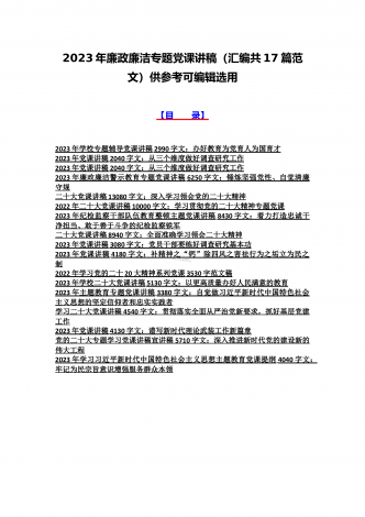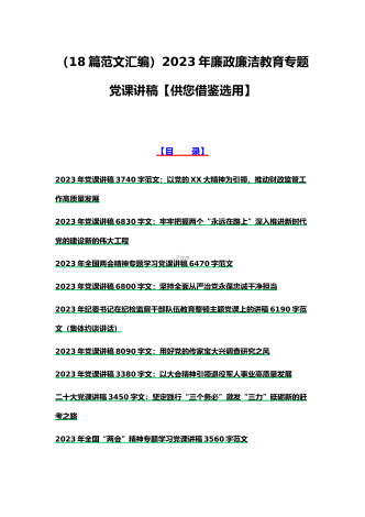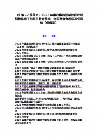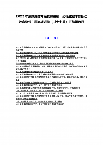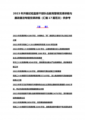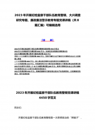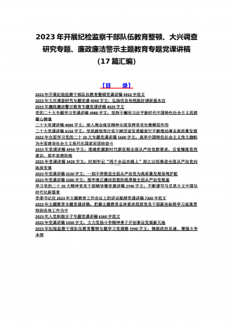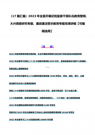 (17篇汇编)2023年全面开展纪检监察干部队伍教育整顿、大兴调查研究专题、廉政廉洁警示教育专题党课讲稿【可编辑选用】