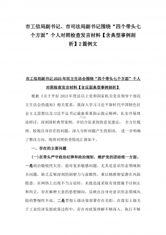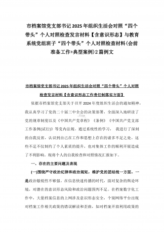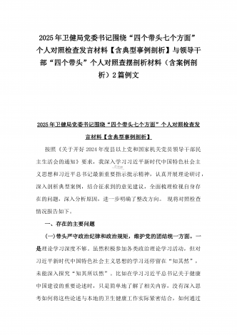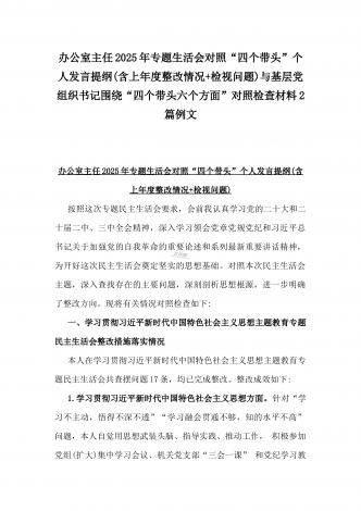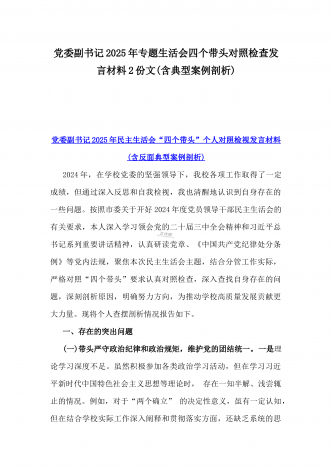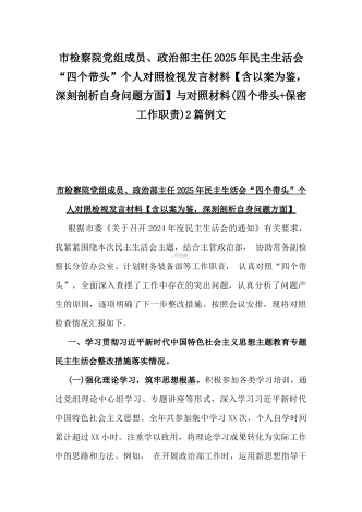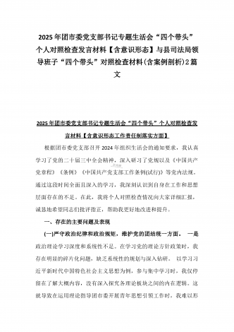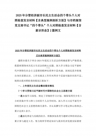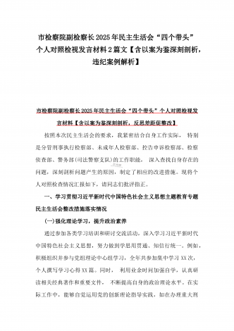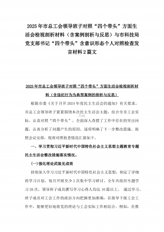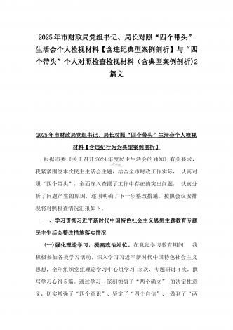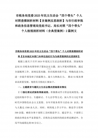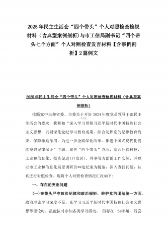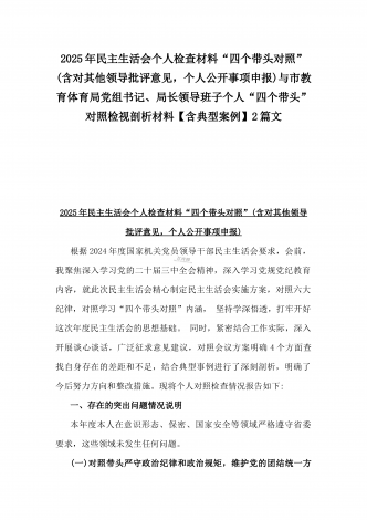 2025年民主生活会个人检查材料“四个带头对照”(含对其他领导批评意见,个人公开事项申报)与市教育体育局党组书记、局长领导班子个人“四个带头”对照检视剖析材料【含典型案例】2篇文