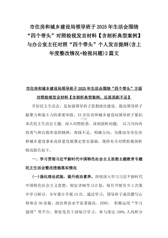 2025年民主生活会个人检查材料“四个带头对照”(含对其他领导批评意见,个人公开事项申报)与市教育体育局党组书记、局长领导班子个人“四个带头”对照检视剖析材料【含典型案例】2篇文2025年民主生活会个人检查材料“四个带头对照”(含对其他领导批评意见,个人公开事项申报)根据2024年度国家机关党员领导干部民主生活会要求,会前,我聚焦深入学习党的二十届三中全会精神,深入学习党规党纪教育内容,就此次民主生活会精心制定民主生活会实施方案,对照六大纪律,对照学习“四个带头对照”内涵,坚持学深悟透,打牢开好...