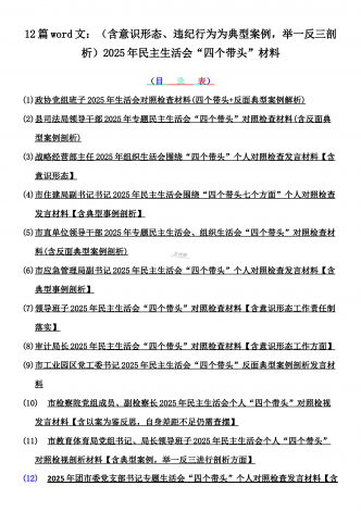 2025年民主生活会“四个带头”方面对照检查材料(含反面案例举一反三剖析、意识形态)13篇word版文稿【供参考】