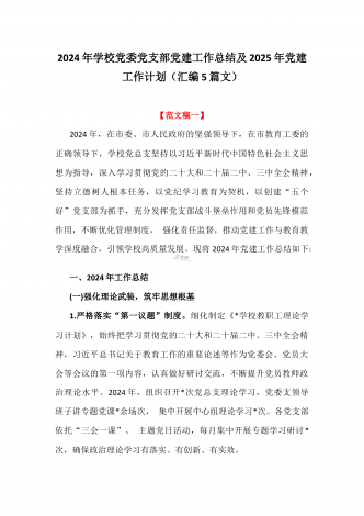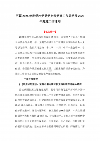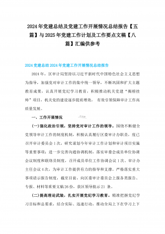 2024年党建总结及党建工作开展情况总结报告【五篇】与2025年党建工作计划及工作要点文稿【八篇】汇编供参考
