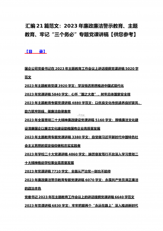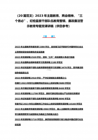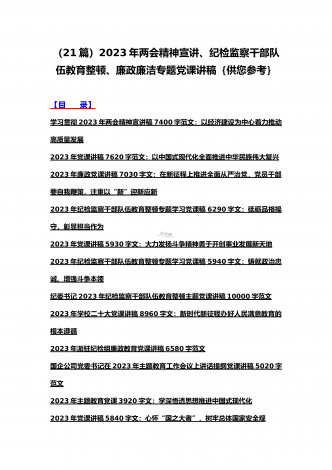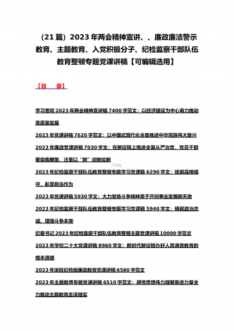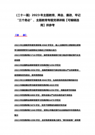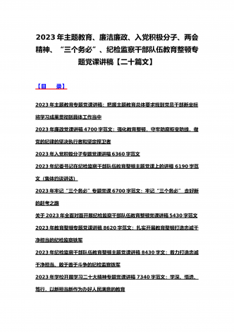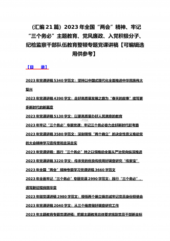 (汇编21篇)2023年全国“两会”精神、牢记“三个务必”主题教育、党风廉政、入党积极分子、纪检监察干部队伍教育整顿专题党课讲稿【可编辑选用供参考】