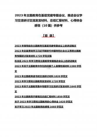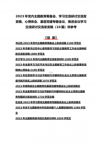 2023年党内主题教育筹备会、学习交流研讨交流发言稿、心得体会、基层党建专题会议、推进会议学习交流研讨交流发言稿(10篇)供参考