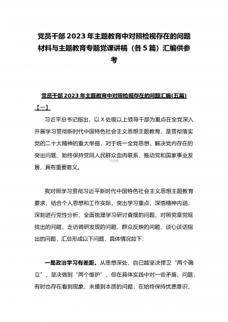 2023年学习贯彻习近平新时代中国特色社会主义思想主题教育读书班交流研讨发言材料(六篇)与主题教育专题工作会议上党课讲稿5篇汇编供参考