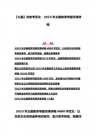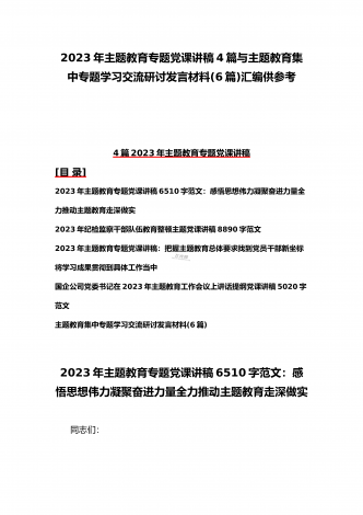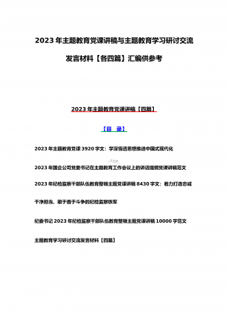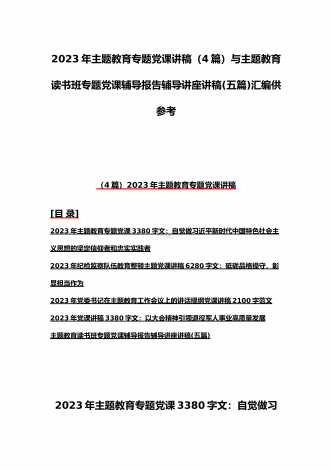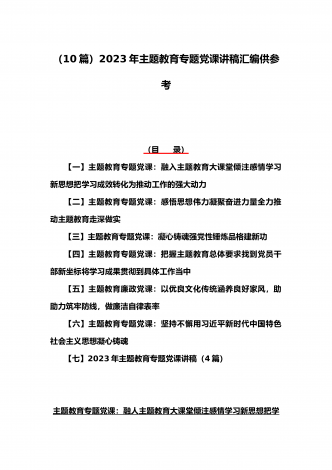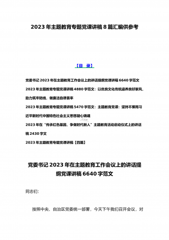 2023年在学习贯彻党内主题教育动员部署会议上的讲话汇编(3篇)与主题教育学习心得体会感悟发言材料【四篇】汇编供参考在学习贯彻党内主题教育动员部署会议上的讲话汇编(3篇)目录1.在学习贯彻习近平新时代中国特色社会主义思想主题教育动员会上的讲话...................................................22.在2023年党内主题教育动员会议上的讲话(银行)......................................................