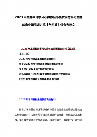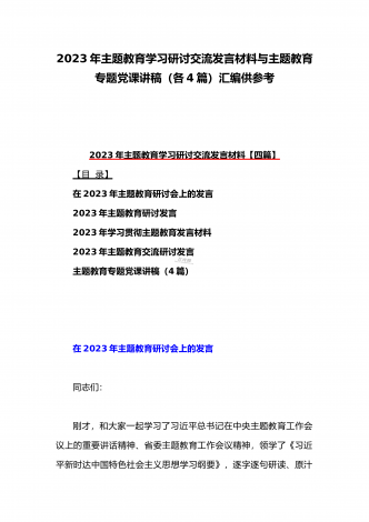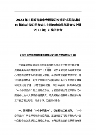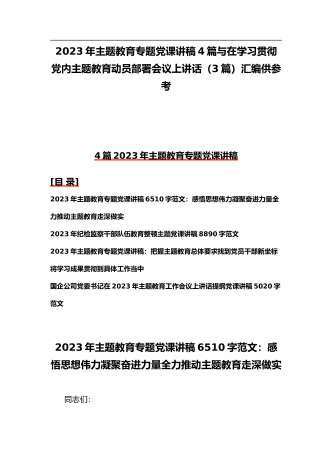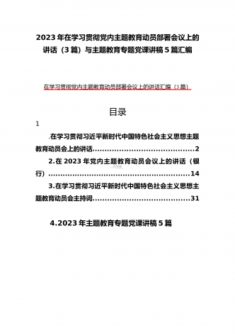 2023年在学习贯彻党内主题教育动员部署会议上的讲话汇编(3篇)与主题教育学习心得体会感悟发言材料【四篇】汇编供参考