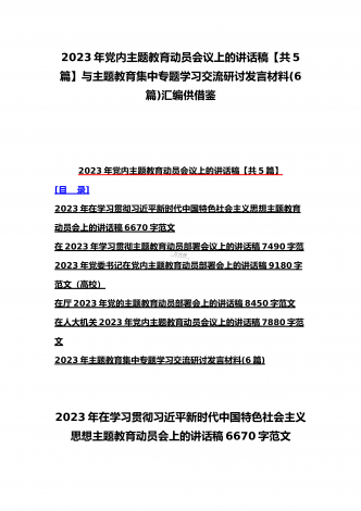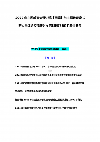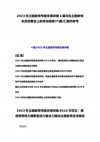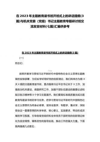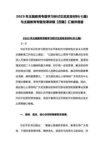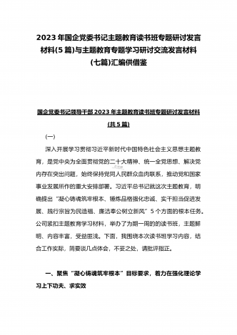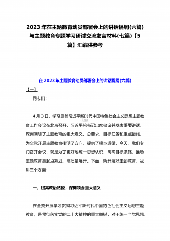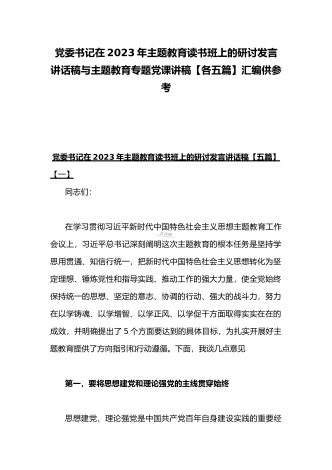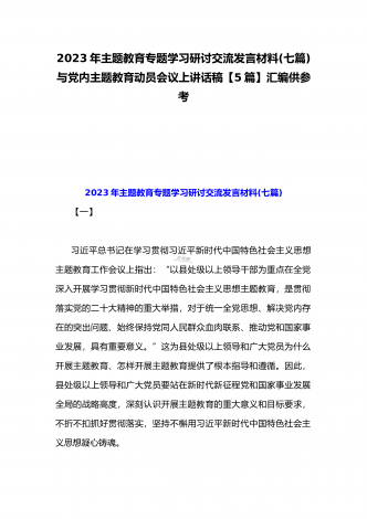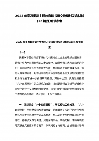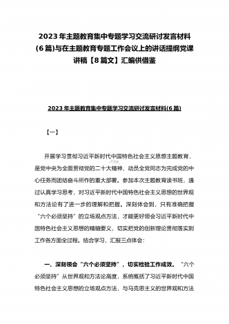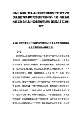 2023年学习贯彻习近平新时代中国特色社会主义思想主题教育读书班交流研讨发言材料(六篇)与在主题教育工作会议上讲话提纲党课讲稿【四篇文】汇编供参考