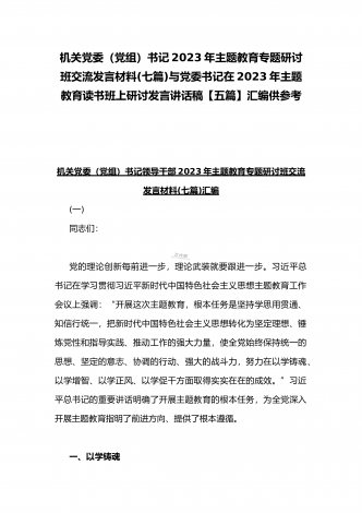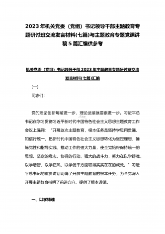 机关党委(党组)书记2023年主题教育专题研讨班交流发言材料(七篇)与党委书记在2023年主题教育读书班上研讨发言讲话稿【五篇】汇编供参考