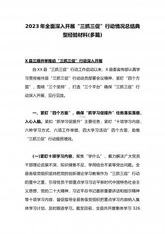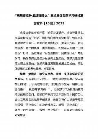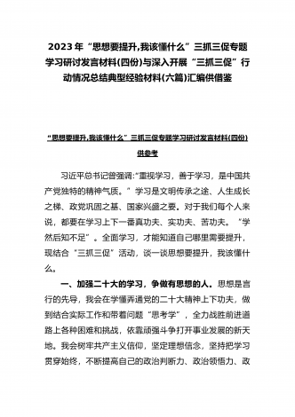 2023年“思想要提升,我该懂什么”三抓三促专题学习研讨发言材料(四份)与深入开展“三抓三促”行动情况总结典型经验材料(六篇)汇编供借鉴