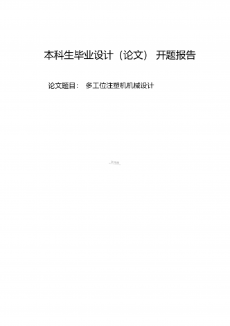 本科生毕业设计(论文)开题报告论文题目:多工位注塑机机械设计目录目录.............................................................................一、课题选题的目的、意义........................................................(一)课题选题的目的........................................................(二...