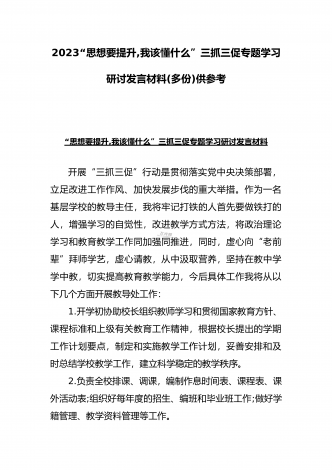 2023“思想要提升,我该懂什么”三抓三促专题学习研讨发言材料(多份)供参考