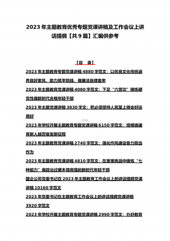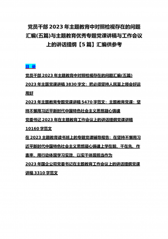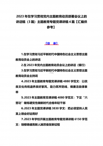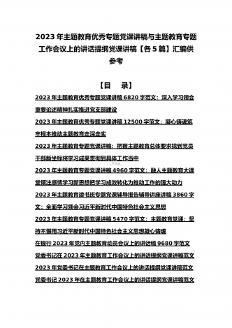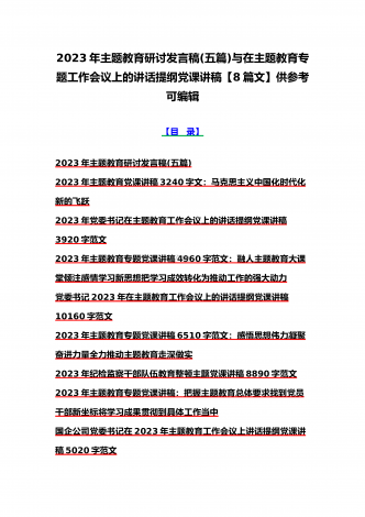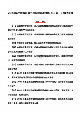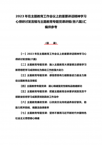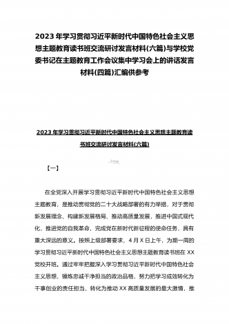 2023年学习贯彻习近平新时代中国特色社会主义思想主题教育读书班交流研讨发言材料(六篇)与学校党委书记在主题教育工作会议集中学习会上的讲话发言材料(四篇)汇编供参考