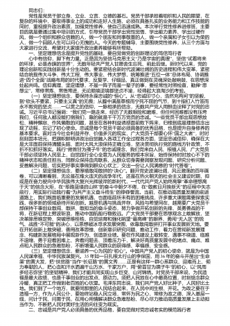 同志们: 党性是党员干部立身、立业、立言、立德的基石。党员干部承担着组织和人民的期望,在复杂的环境中,要取得事业上的成功和走好人生路,必须在具备扎实的业务能力和工作技能的同时,重视提升政治素质,加强党性修养,使自己迅速成熟。本次举行党性修养进修班,主要目的就是要通过集中培训的方式,引导党员干部学出党性觉悟、学出能力素养、学出过硬作风,做一个组织和群众信赖的人,做一个朋友和同事敬重的人,做一个亲属和子女引以为荣的人,做一个回顾人生可以问心无愧的人。今天的专题辅导,主要围绕党性修养,从三个方面...