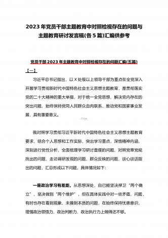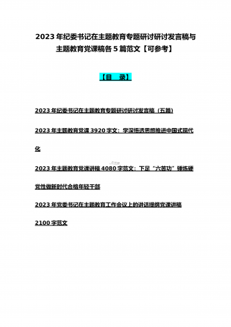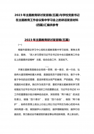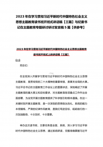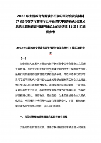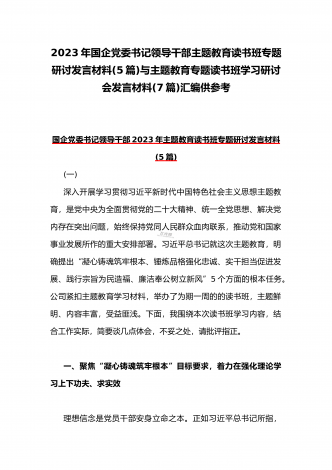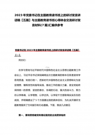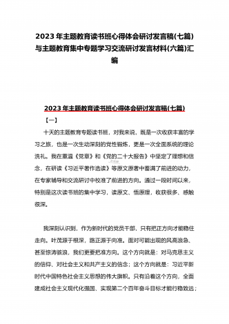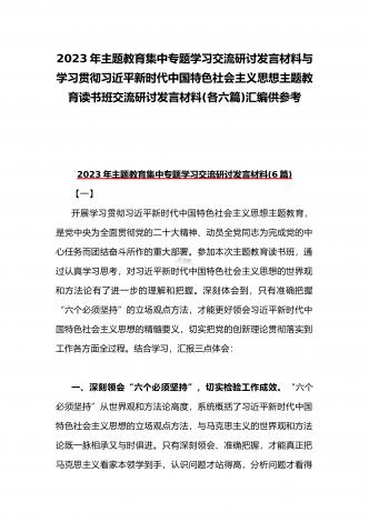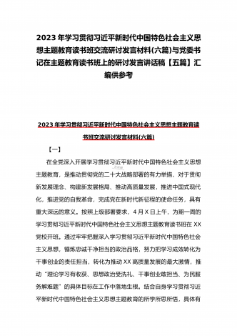 2023年学习贯彻习近平新时代中国特色社会主义思想主题教育读书班交流研讨发言材料(六篇)与党委书记在主题教育读书班上的研讨发言讲话稿【五篇】汇编供参考