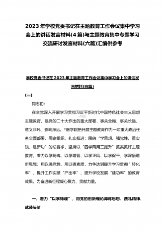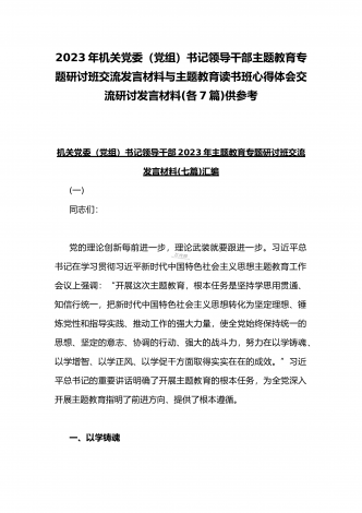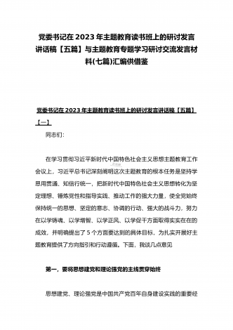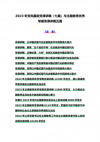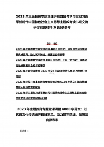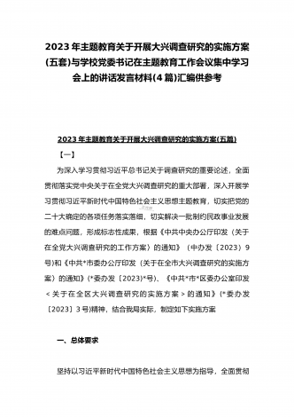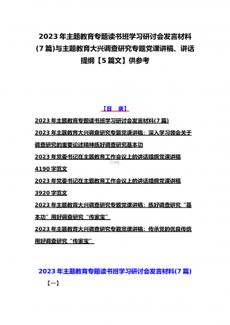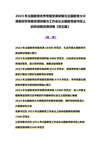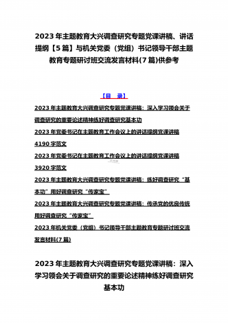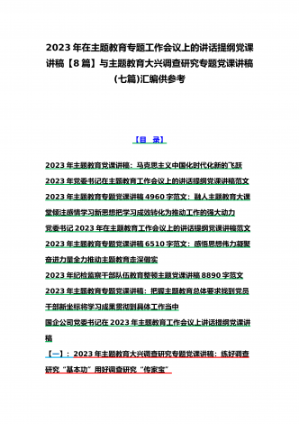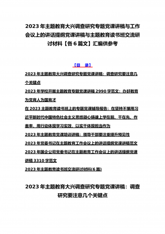 2023年主题教育大兴调查研究专题党课讲稿与工作会议主题教育读书班上的讲话稿党课讲稿【五篇】与在主题教育专题工作会议上的讲话提纲党课讲稿【8篇】供参考可编辑