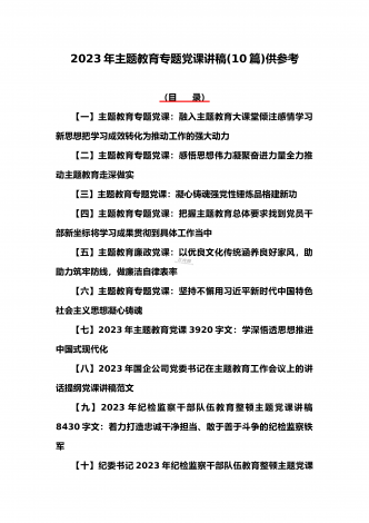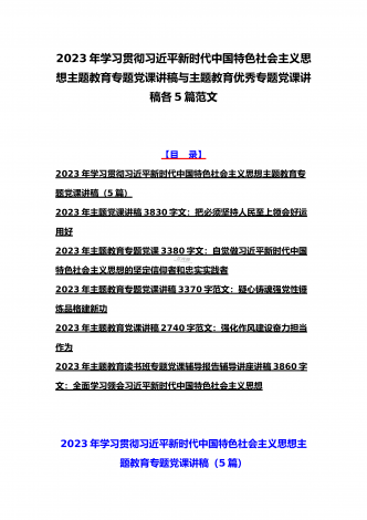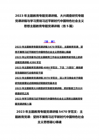 2023年主题教育专题党课讲稿、大兴调查研究专题党课讲稿与学习贯彻习近平新时代中国特色社会主义思想主题教育专题党课讲稿(各5篇)