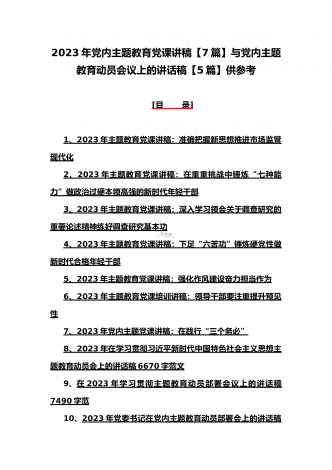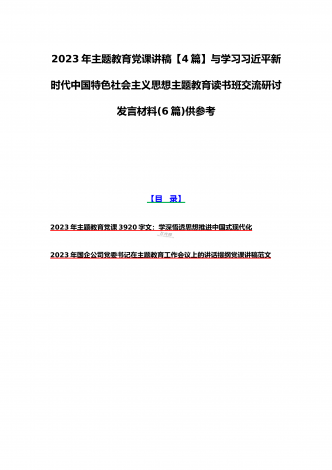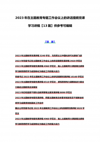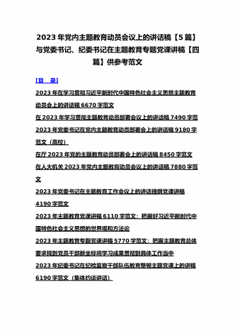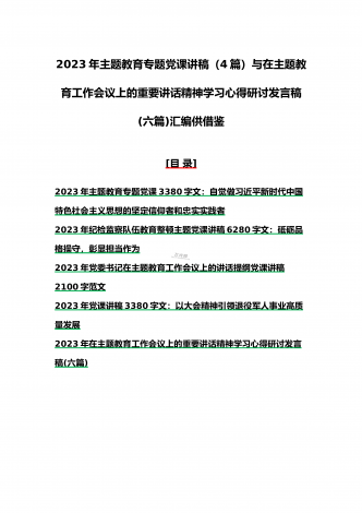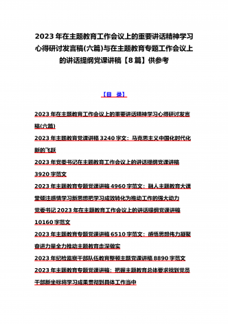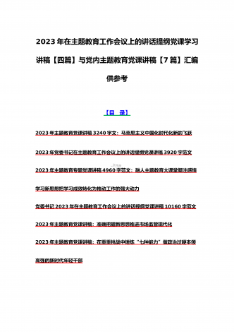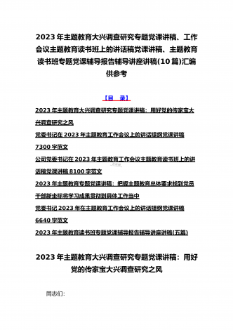 2023年主题教育大兴调查研究专题党课讲稿、工作会议主题教育读书班上的讲话稿党课讲稿、主题教育读书班专题党课辅导报告辅导讲座讲稿(10篇)汇编供参考