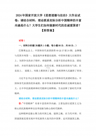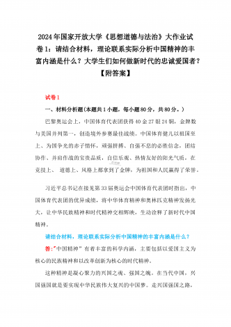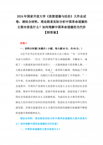 2024年国家开放大学试卷:请结合材料,理论联系实际分析中国革命道德的主要内容是什么?如何理解中国革命道德的当代价。分析中国精神的丰富内涵是什么?大学生们如何做新时代的忠诚爱国者?【附答案】