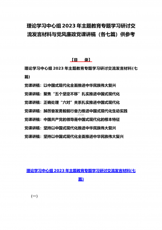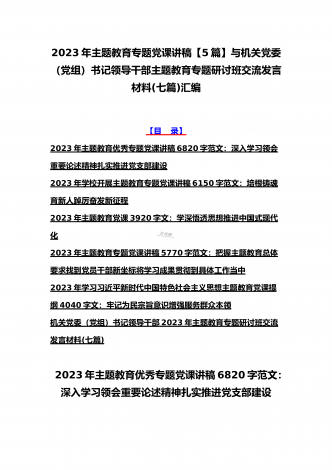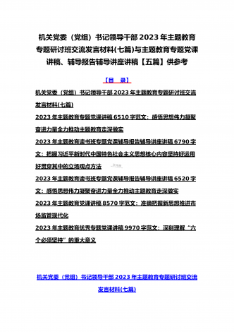 机关党委(党组)书记领导干部2023年主题教育专题研讨班交流发言材料(七篇)与主题教育专题党课讲稿、辅导报告辅导讲座讲稿【五篇】供参考