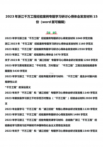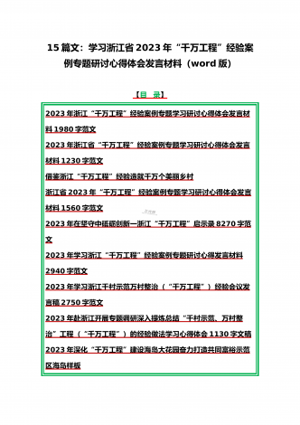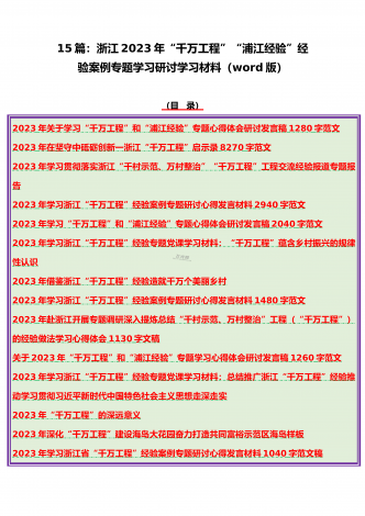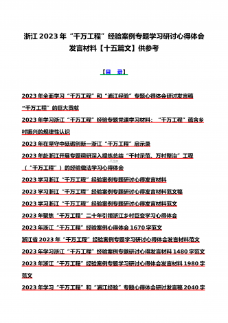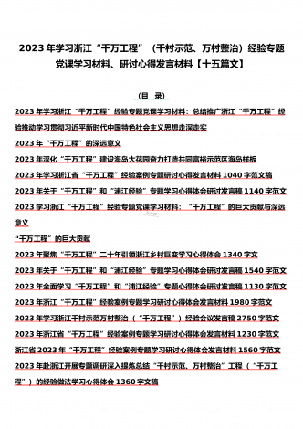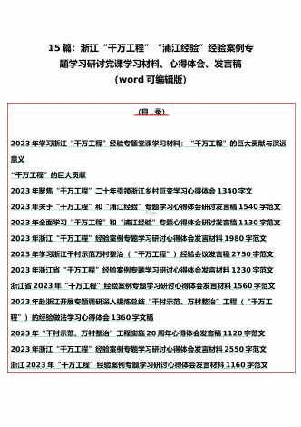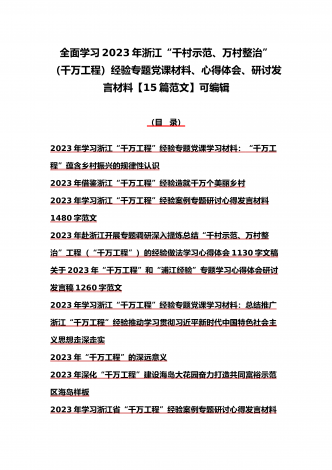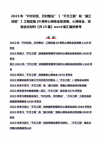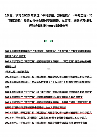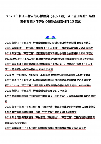 15篇:学习2023年浙江“千村示范、万村整治”(千万工程)和“浦江经验”专题心得体会研讨专题报告、发言稿、党课学习材料、经验会议材料word版供参考