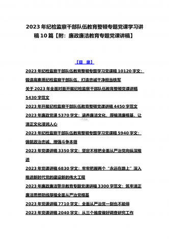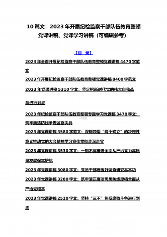 2023年学校专题辅导、全国“两会”精神、学校二十大专题党课讲稿、纪检监察干部队伍教育整顿专题党课学习讲稿(共10篇文)