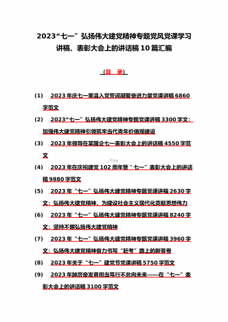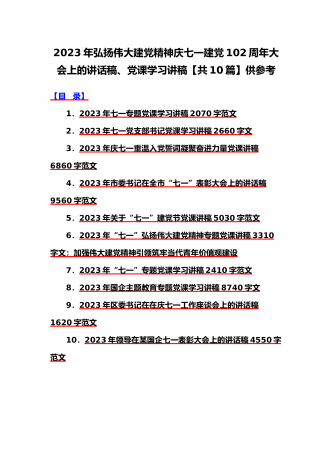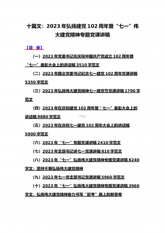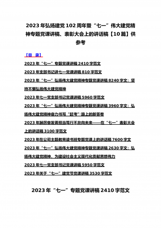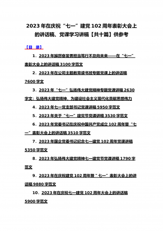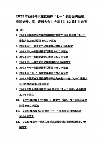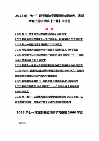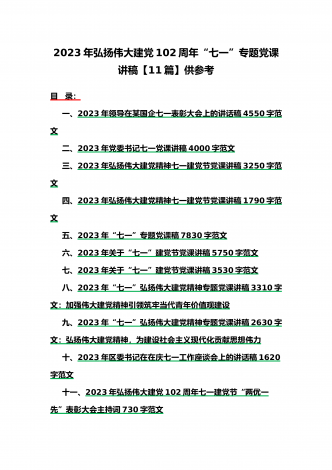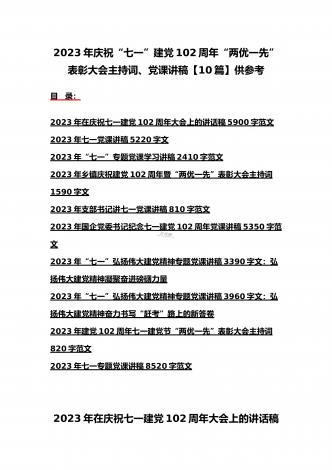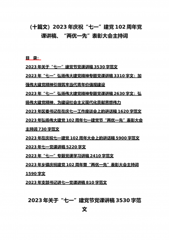 2023年弘扬伟大“七一”建党102周年建党节“两优一先”表彰大会主持词、专题党课讲稿【11篇】供参考