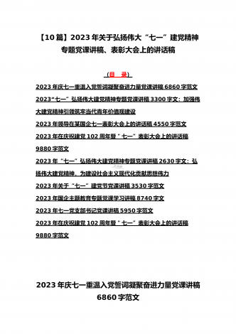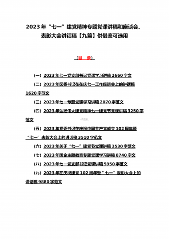 2023年弘扬伟大“七一”建党102周年建党节“两优一先”表彰大会主持词、专题党课讲稿【11篇】供参考目录:2023年国企党委书记纪念七一建党102周年党课讲稿5350字范文2023年“七一”弘扬伟大建党精神专题党课讲稿3390字文:弘扬伟大建党精神凝聚奋进磅礴力量2023年“七一”弘扬伟大建党精神专题党课讲稿3960字文:弘扬伟大建党精神奋力书写“赶考”路上的新答卷2023年建党102周年七一建党节“两优一先”表彰大会主持词820字范文2023年七一专题党课讲稿8520字范文2023年党委书记...