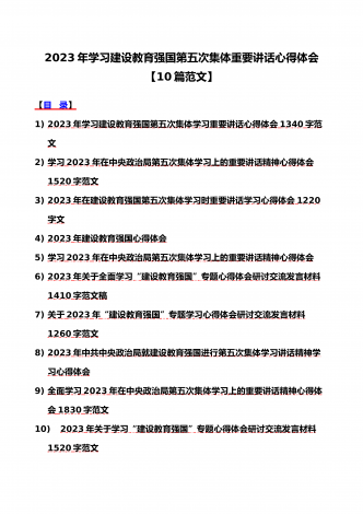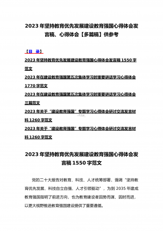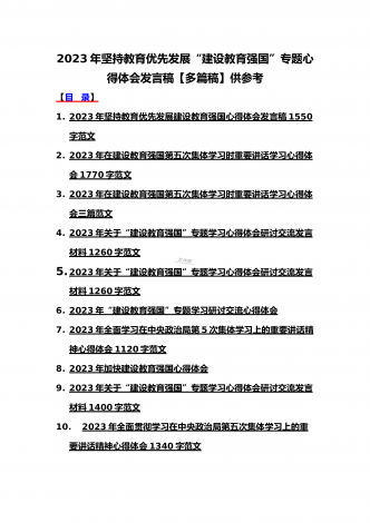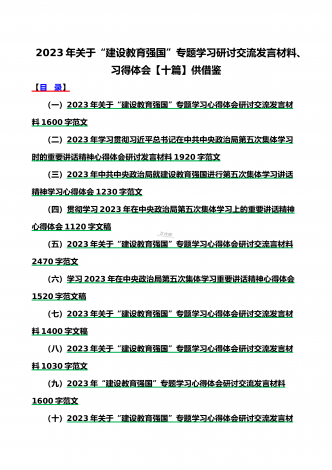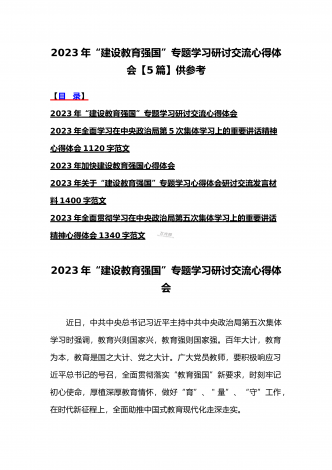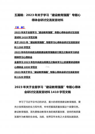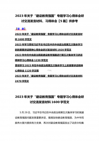 2023年关于“建设教育强国”专题学习心得体会研讨交流发言材料、习得体会【5篇】供参考