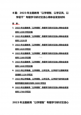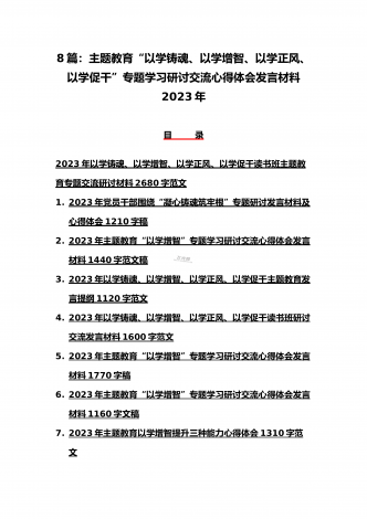 2023年纪检监察干部队伍教育整顿六个方面自查自纠自我检视报告、工作总结汇报材料、读书报告、总结报告、个人检视剖析报告(共8篇)可参考【目录】1)2023年纪检监察干部队伍教育整顿六个方面自查自纠自我检视报告3930字范文2)2023年开展纪检监察干部队伍教育整顿工作总结汇报材料1800字范文3)2023年纪检监察干部教育整顿读书报告3500字范文4)2023年纪检监察干部队伍教育整顿六个方面自查自纠自我检视报告3670字范文5)2023年纪检监察干部教育整顿读书报告2720字范文6)2023年...
