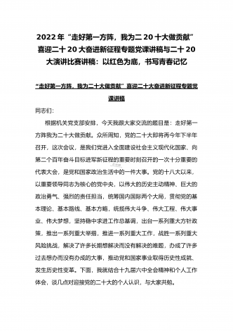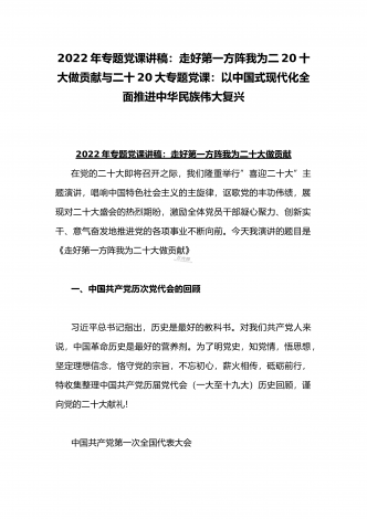 2022年专题党课讲稿:坚决把“两个确立”的实践要求转化为奋进新征程、喜迎二20十大的强大动力和实际行动与二十20大专题党课:弘扬伟大建党精神奋力书写“赶考”路上的新答卷