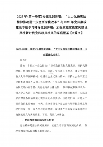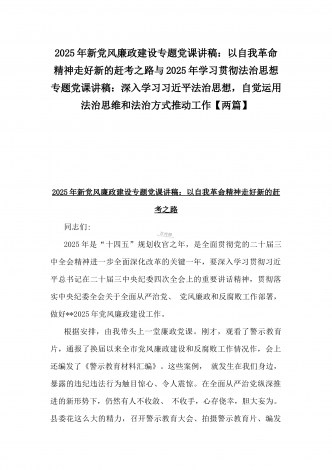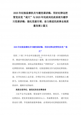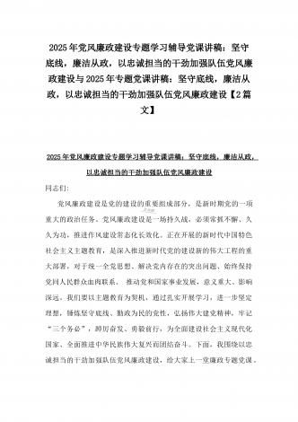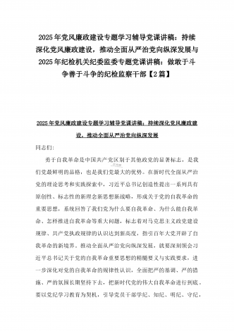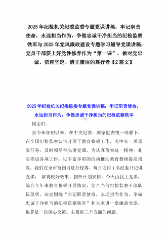 2025年纪检机关纪委监委专题党课讲稿:牢记职责使命,永远担当作为,争做忠诚干净担当的纪检监察铁军与2025年党风廉政建设专题学习辅导党课讲稿:党员干部要上好党性修养作为“第一课”,做对党忠诚、信仰坚定、清正廉洁的笃行者【2篇文】