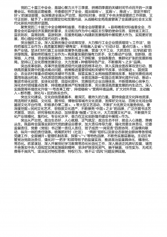 党的二十届三中全会,是凝心聚力大干三季度、拼搏四季度的关键时间节点召开的一次重‘要会议。特别是近期省委、市委都召开了全会,提出唱响x’‘,实施x’‘,推进x’,坚定不移打‘好x’的谋划部署,纵深推进全面从严治党,既对标对表,体现了中央决策部署的工作思路,又守正创新,赋予了x新的发展定位和发展内涵,从战略和全局高度擘画了全面建设社会主义现代化新抚州的美好蓝图。 聚焦党的二十届三中全会精神和省委、市委全会部署要求,x县将精准对标省委全会、市委全会对县域经济发展的新要求,主动担当作为中心城区主引...