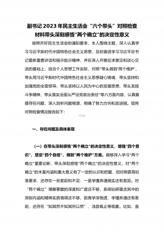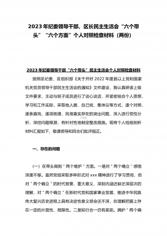 2023年“六个带头”专题民主生活会对照检查发言材料(带头坚持以人民为中心的发展思想、在带头发扬斗争精神等六个方面)